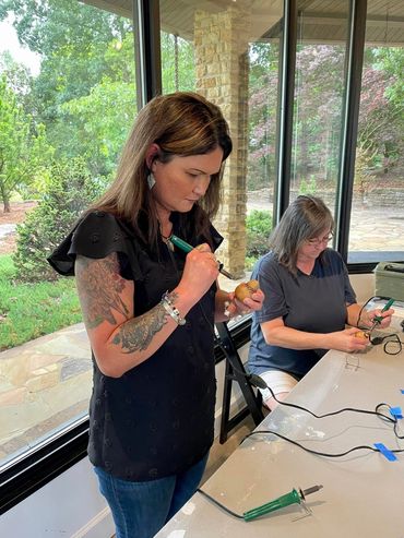 One of the premier pottery studios in the country, we handcraft each piece in our studio here in Russellville, KY. Amanda is a master on the potter’s wheel, throwing all our sculpted pieces by hand one by one. Daniel has been hard at work creating some stunning new laser-engraved medallion designs. We create each design as a vector graphic, then engrave custom dies for embossing into our mugs and yarn bowls.