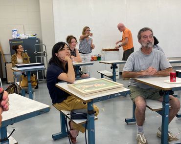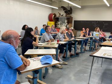 Artworks members and the art enthusiasts learned the ins and outs of being a mural artist from Nellie Lutzwolf's presentation, "Murals, and you can too!"